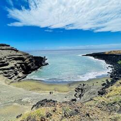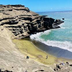 Heute wanderte ich zum „Green Sand Beach“ und die Wanderung war zwar beschwerlich, wurde aber begleitet von Glitzer, Glitzer und noch mehr Glitzer!🤩 Dank der Vulkane werden verschiedenste Gesteine und Mineralien gelöst und so kommt beispielsweise dank Olivin der grüne Strand zu Stande oder aber auch die funkelnden und glitzernden Wege (leider nicht möglich zu fotografieren).