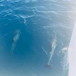 🐬 Ich grüble schon die ganze Zeit, wie ich die Haut der Delfine beschreiben könnte. Ich war sehr überrascht und hatte sie mir irgendwie glitschiger vorgestellt. Sie sind ganz fest und prall und die Haut ist ganz glatt, fast wie eine Art Kunststoff.