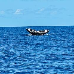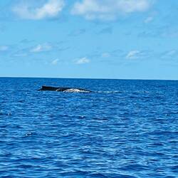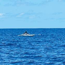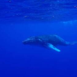 Kurzfassung zu meinem letzten Abenteuer: ich habe auf Moorea insgesamt 5 Waltouren mitgemacht und durfte 5x erfolgreich mit den beeindruckenden Giganten der Meere schwimmen. Manchmal hatten wir Glück und haben direkt welche gefunden, manchmal hat die Suche länger gedauert. Einmal waren wir von 6 Walen gleichzeitig umgeben, sind dann aber erst später mit Mutter und Kalb geschwommen (sie sind selten in Gruppen unterwegs, sondern meist Mütter und Kälber unter sich). Einmal haben wir 7 verschiedene Wale gesehen und konnten mit 4 davon schwimmen. Hierbei hatten wir mal mehr, mal weniger viel Zeit, viele Male durften wir jedoch bei der schlafenden Walmutter bleiben, die nach 15-20 Minuten auftaucht um zu atmen und uns dabei sehr nah kommt. Das Kalb hat weniger Luft und muss deutlich öfter auftauchen oder spielt mit uns, dreht sich um die eigene Achse oder macht Sprünge aus dem Wasser.