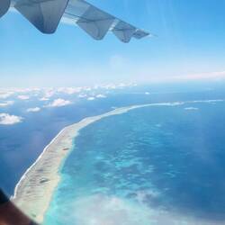 Hierzu musste ich erst einmal 20 Minuten mit dem Taxi zum Hafen fahren, zu meiner Freude fuhr die Fähre dann erst um 10 statt um 9 Uhr (und ich hatte es eilig). Nach einer Dreiviertelstunde Schiffsfahrt war ich dann endlich auf Tahiti angekommen (Schlüsselpunkt für jegliche Weiterflüge und Fahrten) und rannte zum nächstbesten Taxi, was mich für weitere 20 Minuten durch den Verkehr zum Flughafen schleuste. Ein einstündiger Flug in einer etwas kleinen und engen Maschine führte mich dann endlich an mein Ziel - Rangiroa. Doch hier ging es ähnlich kompliziert weiter, ich musste mit dem Taxi zum Hafen, hier weiter ins Taxiboot und am anderen Ende erwartete mich dann mein Gastgeber mit dem Auto - was für eine Reise!😅