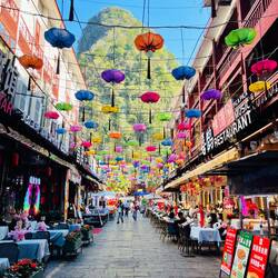 Wohin das Auge reicht - Berge, Berge, Berge. Die Stadt ist um die Berge herum gebaut und so steht man plötzlich mitten in der Stadt vor einer der zahlreichen mystischen Felsformationen. Mir fehlen auch noch eine Woche nach diesem traumhaften Teil meiner Reise die Worte… (und wir alle wissen, wie selten das vorkommt😂)