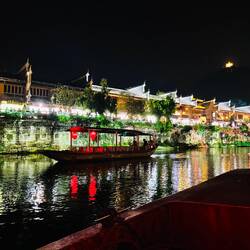 Furong war die eigentliche antike Stadt, die ich sehen wollte. Bekannt ist sie für ihren legendären Wasserfall, der mitten in im Stadtkern steil hinabfällt und hinter welchem man entlanggehen kann. Auch bei Nacht wieder dieser wieder klassisch chinesisch in Szene gesetzt, was ihm ehrlich gesagt hervorragend steht 😅