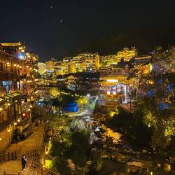 Es standen zwei antike Städte zur Auswahl und eigentlich wollte ich eine der beiden aus Zeitgründen überspringen. Dem Himmel sei Dank, dass meine Reisebegleitung und ich letztlich in Fenghuang landeten und dann trotzdem in die zweite der beiden Städte weiterzogen. Denn beide (so viel kann ich schon einmal verraten) waren wirklich nicht von dieser Welt und schienen eher einem Märchen entsprungen zu sein, als Teil der realen Welt. Hinzu kommt das chinesische Bedürfnis nach ständiger Überstimulation, welchem wir die fast schon übertriebene und doch traumhafte Beleuchtung zu verdanken haben.