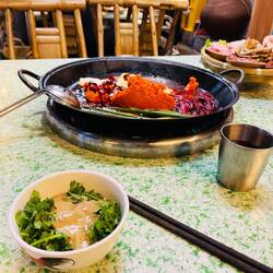 Am Abend kam dann eines meiner absoluten Reisehighlights und zeitgleich eines der besten Essen seither - der Hot Pot. Es handelt sich hierbei um einen Topf randvoll mit Chilli und Szechuanpfeffer, der die gesamte Zeit über brodelnd vor einem auf dem Tisch steht. Dazu kann man sich wie bei Raclette zahlreiche Zutaten hinzubestellen und in dem immer schärfer werdendem Gebräu kochen. Es ist wirklich unfassbar lecker, aber egal wie gut ich mich gehalten habe, am Ende liefen mir die Nase und die Tränen😂 Ich würde es trotzdem jederzeit wieder tun, es war aufregend, spaßig und einfach lecker!❤️🔥Read more
