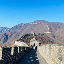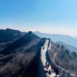 Ich hatte Menschenmassen, Städte und diese niemals lächelnden und rücksichtslosen Menschen sooooo satt. Daher war der Tag an der Chinesischen Mauer eine willkommene und überraschend beeindruckende Abwechslung. Es war wirklich wundervoll, imposant und einmalig! Auch wenn andere Jahreszeiten eine farbenfrohere Kulisse schaffen, so fand ich doch, dass der späte Herbst der Mauer schmeichelte und das Bauwerk damit umso mehr in den Vordergrund rückte. Hier musste man auch tatsächlich einige Schritte gehen ohne Toiletten, Stände mit Essen oder Rolltreppen. Daher hielt sich der Massentourismus hier trotz Sonnenschein auch in Grenzen🤦🏾♀️😂