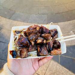 ✂️ Wie schneidet man aber sein Fleisch? Hier wird meist alles vorgeschnitten und so habe ich beispielsweise bei einem Stand ein wirklich köstliches Steak erhalten und MIT STÄBCHEN GEGESSEN?!😂😂 das fand ich sehr schräg, aber es hat Spaß gemacht. Trotzdem gehört das schneiden mit einem schönen scharfen Messer zum Steakessen mit dazu.