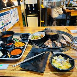 🥩 Das Wichtigste und spannendste kommt als Erstes - das Essen!😂 Ich war recht ratlos, welche Speisen mich denn in Korea erwarten würden. Es ist natürlich asiatisches Essen, gefüllte Teigtaschen, Nudelsuppen usw. Absolutes Highlight war aber eine Besonderheit und zwar das Barbecue. Dies wird wirklich an jeder Ecke angeboten und ist die normale Art Essen zu gehen. Hierbei ist im Tisch ein Grill eingelassen und man grillt einfach DRIN!😂 Dabei variieren die jeweiligen Zutaten je nach Restaurant und mal gibt es ein Buffet und manchmal kann man sich einzelnen Grill- und Fleischsets einzeln ordern. Es erinnert an unser Raclette, aber man hat hierbei eben tatsächlich einen Grill vor sich und wenn das Fett vom Fleisch tropft, dann eben auch mal eine Stichflamme😂 Diese Art zu essen hat unglaublich viel Spaß gemacht (Papa ich habe für dich mitgegessen, du hättest es geliebt❤️).
