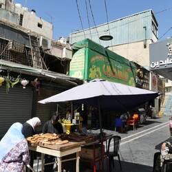 Had dinner at a takeaway joint up a back lane a block from the hotel (convenience was more important to me than Michelin stars). I noticed a staircase at the back and went up to find a dining room of plastic furniture. Ordered from the menu a lamb with vegetable stew. Came with a big pita and it was a fantastic flavour. With a bottle of water bill was 3.50 JD. Beat the iced tea on Rainbow Street for value.