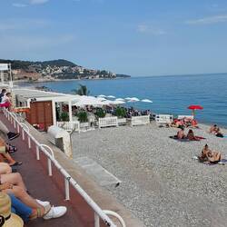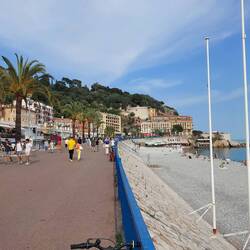 On arrival back in Nice after visiting the Rothchild estate, Nancy and Doug picked up some fixings for lunch which we ate on the patio of the hotel with Jan then we all headed out for a walk along theLäs mer