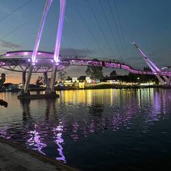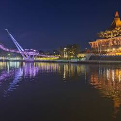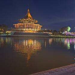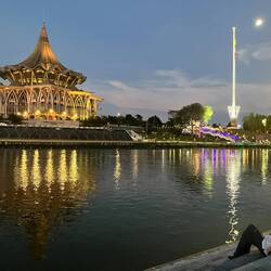 We had dinner at the James Brooke Cafe on the waterfront, then sat and watched the lights come on on the Sarawak State Legislative Assembly (Bangunan Dewan Undangan Negeri Sarawak Baru) and the Darul Czytaj więcej