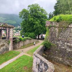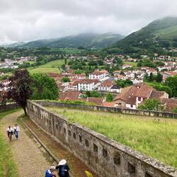 Our bus arrived at 9 am and it took about an hour to get to St. Jean Pierre de Porte the start of the 748 km Camino Frances. Lovely views and town. Popped into the church. Walked to the Citadel whereBaca lagi