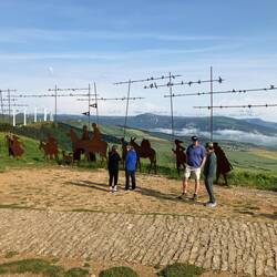 We left Pamplona got our day on part of the Camino. First stop: El Alto del Perdon or Point of Forgiveness. This is a well photographed pilgrim viewpoint and the site of a Memorial to 92 FrancoBaca lagi