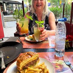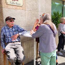 After the Guggenheim we sought some lunch and found it in the Pedestrian mall behind our hotel. They had a table at Basko so we took it. Very pleasant although the last few days dampened by La GrippeBaca lagi