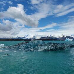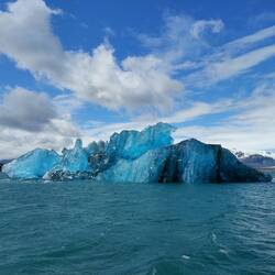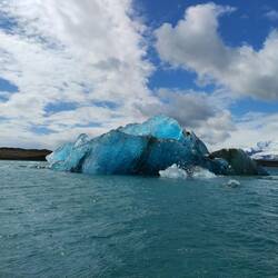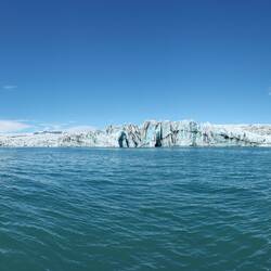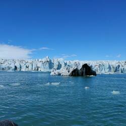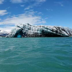Es ging zwischen Robben und Eisbergen über die Lagune zur Gletscherwand. Die hellblauen Eisberge haben sich in der letschten halben Stunde gedreht und werden schnell selbst wieder weiss. Die zweiBaca lagi