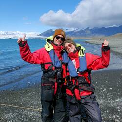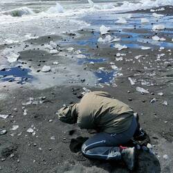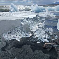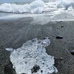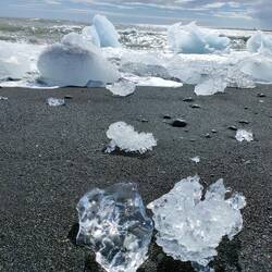 Nach der Lagune ging es noch direkt weiter zum Stand nach der Engstelle. Die kleineren Eisberge die es durch den Fluss geschafft haben werden dort wieder an den Strand gespühlt.