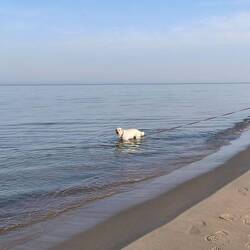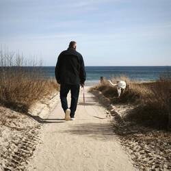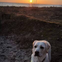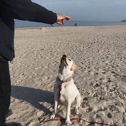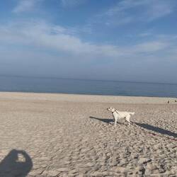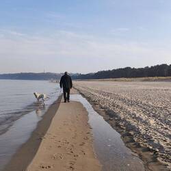 Viel Spazieren am Strand und sehen wie glücklich Mensch und Hund ist