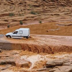 Hier hat es seit 3 Jahren nicht mehr geregnet und nach nunmehr 2 Tagen Dauerregen erleben wir den Zufluss zur Lagune aus einer ungewohnten Sicht. So ungewohnt dass selbst die Marokkaner hier BilderEn savoir plus