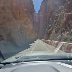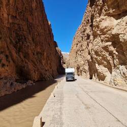 Ein bisschen können wir in die Dadés Schlucht hineinfahren bevor die Straße zu einer einspurigen Piste wird, die wir aufgrund unserer Länge einfach nicht schaffen.