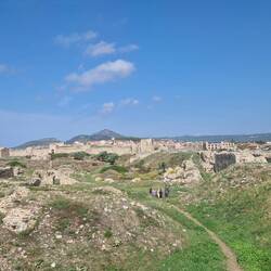 ViajeroBin auf heute abend gespannt. Stehe am einer kleinen Klippe mit Blick auf Burg und Methoni.