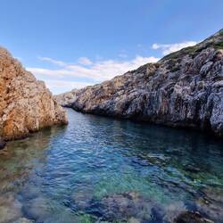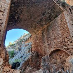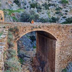 Ja, die Bucht kann man nicht einfach mal anfahren. Die muss man sich verdienen. Hoch oben vom Berg startet die Wanderung vorbei an Resten einer alten Klosteranlage in Richtung der Avlaki Schlucht.Lue lisää
