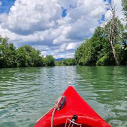 Lange nicht gemacht und deswegen mal wieder richtig Bock drauf gehabt. Erst stromaufwärts bis zum nächsten Wehr. Ab da hab ich keine Möglichkeit gefunden das zu umgehen. Da das große 3er Kanu sichLeggi altro