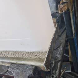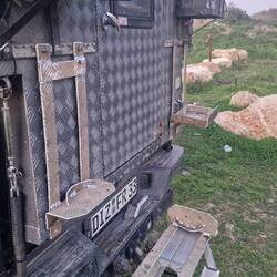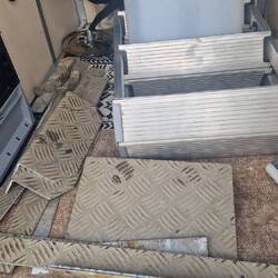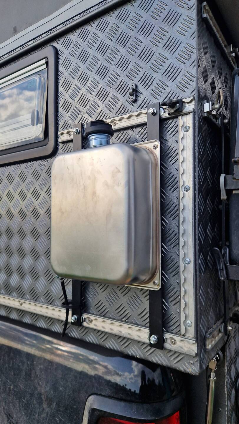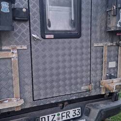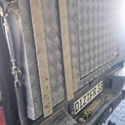 Ich komme noch an einer Metall Werkstatt vorbei und halte mal kurz an. Sie kanten und schneiden nur haben dafür aber Alu Riffelblech da. Ich lasse mir für die Gasflasche und einen Wasserkanister alles schneiden und biegen. Wird hier nach Gewicht abgerechnet und so zahle ich ca. 30€.