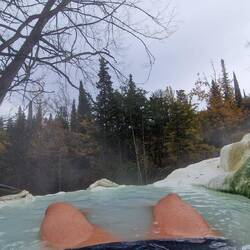 Boah ist das herbstlich hier als ich aufwache. Kühl, grau, regnerisch. Egal zu den heißen Quellen geh ich Stoff jeden Fall mal.
