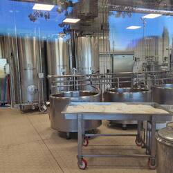 Die Nacht habe ich hier auf dem Parkplatz verbracht und begebe mich zum Frühstück in eines der drei Gebäude in denen die hier erzeugten Waren verkauft werden.