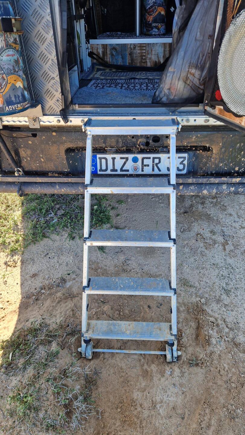 Die Leiter ist soweit wieder einsatzbereit. Nieten ausbohren, alles gerade dängeln soweit es eben geht dann neue Löcher bohren und Schrauben durch.