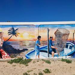 Ein überall mit globaler Streetart von Künstlern aus über 30 Ländern geschmücktes Dorf.