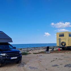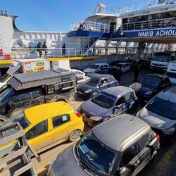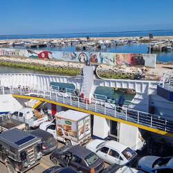 Die kurze Fährfahrt nach Djerba rüber dauert etwas da die Fähren sehr klein aber die Schlange sehr lang ist 😁