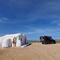 Heute früh erfahre ich im Gespräch mit einem Tunesier noch etwas über einen unbekannten Rommel Bunker. Dort soll der "Wüstenfuchs" sein Quartier gehabt haben. Ist zwar wieder ein Stück zurückBaca lagi