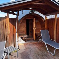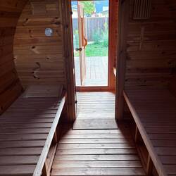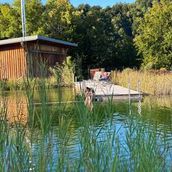 Heute Dauerregen, ich war trotzdem 10 km joggen, nachmittags hatten wir einen Saunatag in einer Fasssauna auf dem Gelände. Iris war im Naturschwimmbad schwimmen .