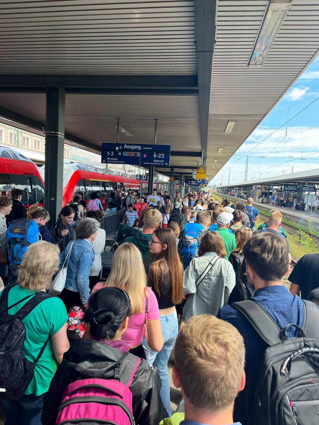 Da wir alle ein Deutschland Ticket haben, nehmen wir den RE von Dresden/Leipzig über Nürnberg und München nach Salzburg. Die Züge sind zwar maßlos überfüllt und zum Teil funktionieren die Klimaanlagen nicht, dies schmälerte allerdings nicht unsere Vorfreude auf die Berge. Auf der letzten Strecke nach Salzburg suchen wir Campingplätzen in der Nähe. Überall, wo wir anrufen, gibt es keine Plätze mehr. Da immer zuerst gefragt wird, wie viel Platz wir benötigen und erst im Nachhinein, wenn wir sagen, dass wir noch ein oder 2 Stunden brauchen, um anzukommen, uns abgesagt wird, lässt uns glauben, dass die Campingplätze noch Kontingente haben.