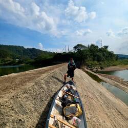 Tag 4: was ein Kampf! Keine Strömung, viel Gegenwind, 2 große Staudämme um die wir unser ganzes Gepäck rum tragen mussten.