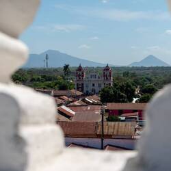 Lange Zeit waren sie Rivalen, die wiederholt um den Titel der Hauptstadt Nicaraguas kämpften (1858 dachte sich Managua wahrscheinlich: wenn sich zwei streiten...). Nach Granada besuchen wir also die zweite grosse Stadt im Kolonialstil, welche als liberalste und intellektuellste des Landes gilt: León. Ähnlich wie schon Granada gibt es auch hier wunderbare Gebäude in allen Farben, aber alles weniger herausgeputzt und zur Schau gestellt - uns gefällts, wir fühlen uns direkt wohl. ☺️ Unaufgeregt aber geschäftig sind hier die Strassen mit den farbigen alten Schulbussen, den Verkäufer:innen und Flohmarktständen. Unsere Unterkunft ist wahrscheinlich bisher ungeschlagener Sieger im Preis-Leistungs-Verhältnis: 20$ pro Nacht zahlen wir hier für ein riesiges (!) Zimmer mit eigenem Bad, A/C, bequemem Bett und sogar noch Frühstück dazu. Der kleine Innenhof ist voller Pflanzen, rundherum schützen die dicken Mauern des alten Gebäudes.