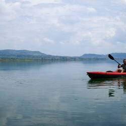 Einen Ausflug unternahmen wir dann aber doch noch. Wir mieteten uns ein Zweierkajak und machten uns auf in Richtung See. Zuerst ging es durch einen bewaldeten Kanal, wo wir schon zahlreiche Reiher und Eisvögel beobachten konnten.