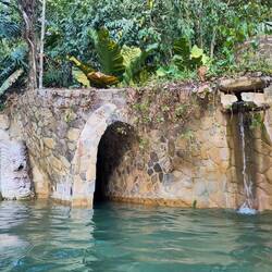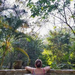 Am Nachmittag folgte dann ein Kontrastprogramm. Nach einer holprigen Fahrt kamen wir im Luna Jaguar Spa - eine Themalbadanlage mit zahlreichen kleinen Pools mitten im Dschungel. Dazwischen fliesst der Fluss, dessen Wasser hier tatsächlich über 90°C hat...😄 Wir erkundeten die Pools, von der offenen Sauna über dem dampfenden Fluss bis zum Schlammbad, beobachteten den Sonnenuntergang vom warmen Wasser aus und kehrten schliesslich tiefenentspannt in unser Hotel zurück.