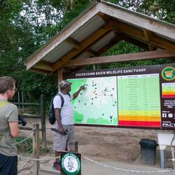Hopkins selbst ist dann ein herziges, ziemlich verschlafenes Örtchen an der Küste. Und obwohl wir bisher in den etwas unbekannteren und ruhigeren Orten meist die allerfreundlichsten Menschen angetroffen haben, schien hier gerade das Gegenteil der Fall zu sein – so fiel uns der Anfang etwas schwer, auch weil wir eigentlich noch Tauchen gehen wollten, was allerdings nicht klappte. Die Alternative nahte aber: Schliesslich landeten wir auf einer privaten Nachttour im Cockscomb Jaguar Reserve, dem grössten Schutzgebiet in Belize. Schon auf dem Weg konnten wir etliche Vögel – insbesondere Tukane – beobachten. Anschliessend spazierten wir auf leisen Sohlen und mit Stirnlampen ausgerüstet durch den dunklen Dschungel. Hier trafen wir auf allerlei Kleingetier wie einer Tarantel, einer Baby-Kaffeeschlange, einer Reisratte und einer Aga-Kröte. Vom Jaguar, der hier besonders geschützt wird (im ganzen Park leben rund 200 Jaguare!) sahen wir leider nur die Kratzspuren am Gummibaum. Nachts alleine im Dschungel ist aber auch ohne grosse Tiersichtungen ein Highlight – einerseits eine unglaubliche Stille, gleichzeitig aber die verrücktesten Geräusche von ohrenbetäubenden Zikaden, den rauschenden Blättern, den fallenden Früchten der essenden Fledermäuse bis hin zu den Schreien eines Ozelots in der Nähe!🤩 So machten wir uns glücklich auf die Rückfahrt – und da geschah es doch noch: Vor uns im Scheinwerferlicht starrte uns kurz ein Jaguar an, bevor er ins Dickicht verschwand!😱 Ein paar Meter später trafen wir auf eine weitere Wildkatze – ein Margay lief zuerst ein wenig hin und her und sprang schliesslich mit einem Satz zurück in den Wald. Unglaublich!!🐆Læs mere