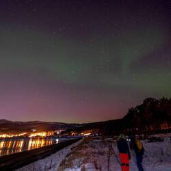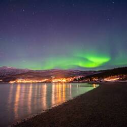 Norwegen begrüsste uns mit einer klaren Nacht. Also mieteten wir uns kurzerhand ein Auto, um aus der Stadt fahren zu können für unsere eigene Polarlicht-Mission. Nach dem Einchecken und einerLes mer