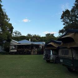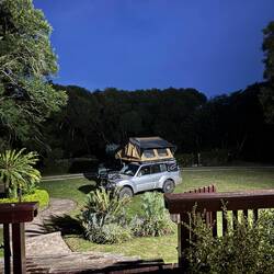 So geht es also ins Dachzelt unser Camp heute auf dem Rasen vor dem Haus.