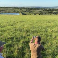 Wir unterhalten uns mit Peter und so kommen wir auf das Thema schießen. Er ist ganz verblüfft das es für uns so besonders ist, also bietet er uns an auch einfach mal zu schießen. Wir fahren also einige Kilometer über seine Felder und suchen nach Tieren die er Schießen kann. 😂 Anstelle von einem Tier entscheiden wir uns dann aber für einen Stausee als Ziel unserer ersten Schüsse.