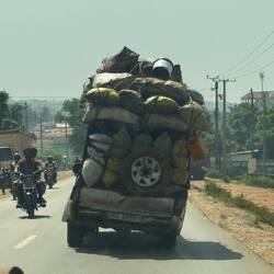 Die Autos die man hier am häufigsten sieht sind neben dem 190er Mercedes der meist als Taxi genutzt wird, Toyota Land Cruiser und Alte Landrover series. Echt Beeindruckend ist in welchem Zustand die Autos hier noch fahren, teilweise lässt sich kaum erkennen was es für ein Auto ist. Alles verbeult, kaum noch Lack, die Türen mit Kordel zusammengebunden, keine Lichter, Fahrwerk so kaputt das das Auto fast seitlich fährt und auf der Straße schleift und trotzdem immer voll beladen und die ganze Familie im Auto egal wie groß die Familie ist. Wir kaufen in der Stadt ein und füllen unsere Vorräte ein wenig. Hier können wir auch das erste Mal wieder tanken.