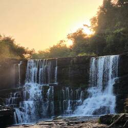 Wir entscheiden uns bevor es dunkel wird auch noch eine Runde schwimmen zu gehen. Tatsächlich echt etwas warm, ist das Wasser dennoch eine Abkühlung. Während immer mehr feiernde den Ort verlassen, bekommen wir mit das die vier weißen Fische im Wasser doch Aufsehen erzeugt haben. So wollen ein paar Frauen etwa unseren Alters, ein Bild mit uns im Wasserfall haben.😂😂