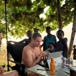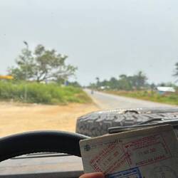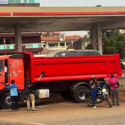 Wir kämpfen uns am nächsten Morgen nach Conakry rein, komplette Chaos. Es ist sehr schwer durch die Stadt zu kommen, da es so viel Verkehr gibt und keine richtige Regeln. Es entsteht an jeder Kreuzung einfach nur Chaos. Zum Glück bekomme ich von dem Stress nicht all zu viel mit, denn Malte ist so nett und übernimmt das fahren während ich Das Letzte Formel 1 Rennen dieses Jahr auf meinem Handy schaue. Gut das wir Starlink dabei haben, so kann ich mit gutem Internet fast ohne Unterbrechung streamen.