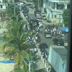 Ich gebe meinen Bodyguards einen Drink aus und wir holen meine Machete ab. Danach geht es zu viert auf dem Mototaxi zum Strand.