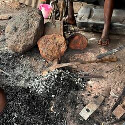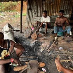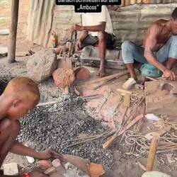 15 Minuten später sitze ich zusammen mit ihm auf einem Mototaxi (zu dritt) und wir fahren Richtung Schmiede. Ich glaube die Bilder und Videos sprechen für sich, es scheint als wäre man im Mittelalter. Es war auf jeden Fall einer der coolsten Erfahrungen mit einem Local die ich bis hier hin hatte. Die Wartezeit während die Machete gefertigt wird nutzen wir für einen Rundgang durch das Dorf. Eindrücke die ich nie vergesse… Das Zentrum des Dorfs ist wie immer die Hauptstraße, abseits davon verteilen sich die Wohnhäuser (Hütten), alles nur verbunden mit Wegen kaum erreichbarer mit Mopeds. Das ist auch nicht notwendig da die Einheimischen meist selbst gar keine Mopeds und Autos besitzen. So ist es üblich sich mit den Moto Taxis fortzubewegen. In einem überfüllten Mini Local „Restaurant“ Sitzen etwa 50 Leute gequetscht und schauen auf einen kleinen Fernseher einen Film zusammen.