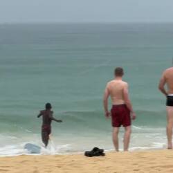 Eigentlich wollten wir gerne Surfen, der Ort ist auch bekannt dafür. Aber leider haben wir kein Glück mit den Wellen sie sind klein und brechen nur sehr nah am Strand. Also tun wir ein paar Jungs aus dem Surfclub nur einen Gefallen und machen einige Bilder mit ihnen.