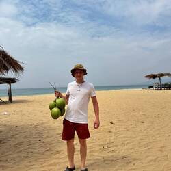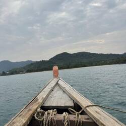 Wir starten morgens um 8 Uhr und werden von unserem „Chauffeur“ abgeholt, dann geht es auf das erste etwas größere bunte Holzboot (Platz für ca.10-12 Leute theoretisch). Mit diese Boot geht es übers Meer in die Mangroven, wir fahren ein paar „Arme“ des Gebietes ab bis der Fahrer uns an einer Insel raus lässt. Hier bekommen wir eine „Tour“ über die Fischerei und der Pflanzen die hier wachsen. Es ist mehr ein Spaziergang mit einem Lokal als eine Tour aber das ist okay. Am Ende des Spaziergangs müssen wir die Schuhe ausziehen, es geht Barfuß durch den Mangroven Schlamm weiter. Bis wir wieder am Wasser sind hier sitzen unter einem Baum ein paar Jugendliche mit ihren kleinen Booten. Einer von ihnen paddelt uns durch die kleinsten Seitenarme der Mangroven bis raus ins etwas breitere Gewässer. Hier sammelt uns unser Großes Boot wieder auf. Das ganze dauert mittlerweile dafür das wir die 3 Stunden Tour gebucht haben ganz schön lange, soll uns aber nicht weiter stören denn bezahlt haben wir schon. Doof nur das wir eigentlich mittags weiter fahren wollten. Mit dem Großen Boot geht es nach eine kurzen Schwimmpause wieder Richtung Festland. Auf dem Weg wird uns Zucker mit Tee serviert.😂 Ohne scheiß ich dachte Russen packen viel Zucker in den Tee aber das hier ist nochmal ein anderes Level. Es können auch immer nur zwei gleichzeitig trinken denn auf dem Boot gibt es nur zwei Gläser für alle zusammen. Am Festland angekommen bekommen wir noch eine Fischtour durch den Hafen. Ein bestialischer Geruch, dennoch interessant wie die Menschen in mitten diesem Fischmock neben den Fischen die in der Sonne trocknen leben. Auch Muscheln und andere Dinge aus dem Meer werden hier verarbeitet. Es gibt auch ein paar kleine Buden in den die Fischernetze und Fallen für Tintenfische gebaut werden.