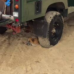 Für das fahren im Weichen Sand schalten wir das Verteilergetriebe auf Untersetzung und sperren das Mitteldifferential. Der volle off-road Modus quasi. Der unterschied ist direkt spürbar und das Auto Buddelt sich durch alles durch, immer mit ordentlich Gas, ist auch die Soundkulisse des Motors Musik in den Ohren.